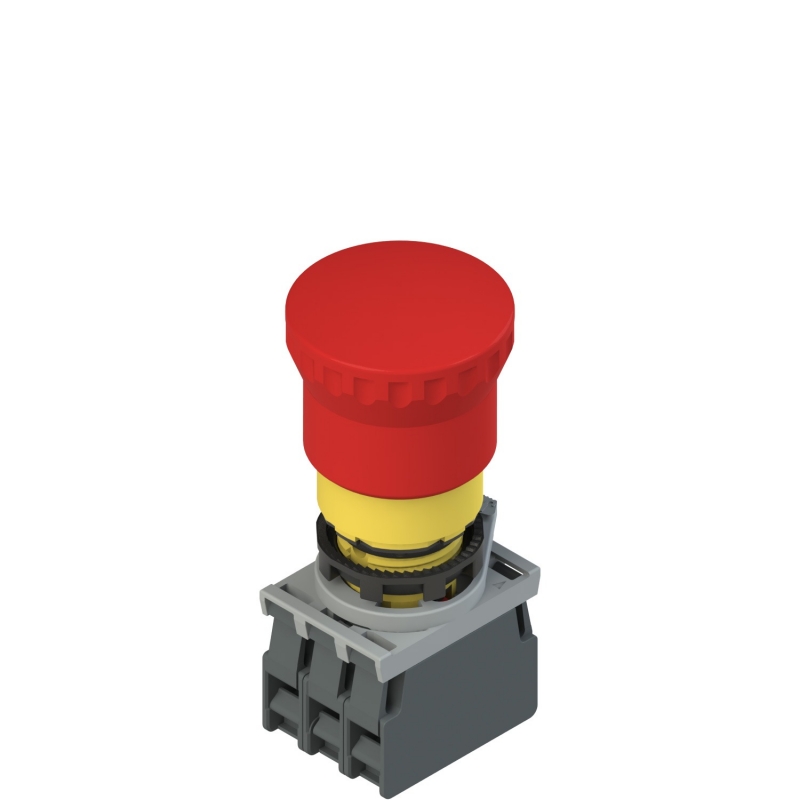PULSADOR DE EMERGENCIA ROJO TIPO HONGO, CABEZAL 40MM, DIAM. 22MM, 1NC, DESBLOQUEO POR GIRO/ PULSADOR MODULAR DOBLE, 1NA+1NC