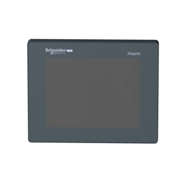 Este interfaz de operador (HMI) con pantalla táctil pequeña Magelis STU se alimenta con 24 V CC, tiene una pantalla TFT LCD de color de 5,7 pulgadas con 320 x 240 píxeles (QVGA) y 32 MB de EPROM. También incluye puertos USB: 1 host + 1 mini-B, 1 puerto RS232C / RS485 y 1 puerto Ethernet TCP/IP. Es ideal para optimizar la transmisi ón de información y la comunicación con sistemas de automatización industriales y de infraestructura, como en el caso de máquinas compactas, sistemas de manipulación, máquinas de alimentación y bebidas y la industria farmacéutica. La pantalla muestra las páginas gráficas en formato monocromo. Gracias a su fijación con un orificio de 22 mm de diámetro, no es necesario ningún troquelado rectangular en el panel. Su puerto de host RS485 lo hace ideal para supervisar y controlar sistemas y máquinas simples.